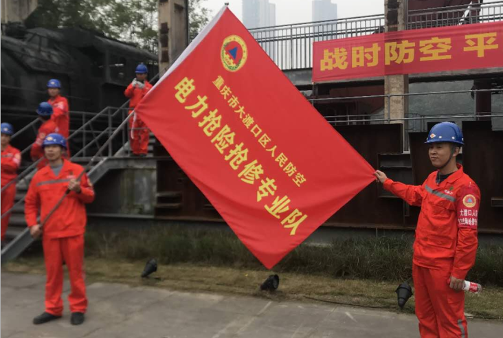 重慶大渡口區(qū)人民防空辦公室組織的大渡口區(qū)2019年人民防空專業(yè)隊伍 防空襲綜合演練:現(xiàn)在進入現(xiàn)場的是我區(qū)電力搶險搶修專業(yè)隊,這支專業(yè)隊由重慶寶翼電力設備維護有限公司組建。戰(zhàn)時該專業(yè)隊主要負責城市電力應急供應及電力中斷恢復任務,本次演練主要負責電力系統(tǒng)受損時的恢復工作。